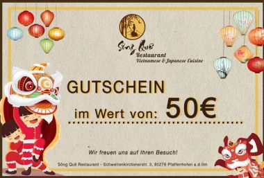 Gutscheine können bei uns im Restaurant erworben und eingelöst werden. Komm gerne vorbei und suche dir einen Gutschein im Wert von 20, 30, 50, 70 oder 100Euro aus.